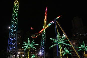 Стотина километра по-късно, подминаваме Tweed Heads иCoolangatta. Минаваме под една голяма табела: Welcome to Sunny Queensland! (Добре дошли в слънчев Куинсланд). Вече сме в другия щат.Само дето няма слънце и сякаш се кани да вали. В далечината като мираж се появават множество високи сгради. Там е Surfers Paradise (Раят на сърфистите).
