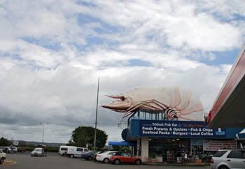Минаваме също и край The Big Prawn (Голямата скарида), някакъв ресторант на бензиностанция в Lennox Head.