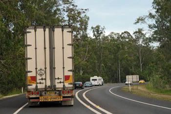 The truckie (големия камион) не е проблем, те карат добре без да падат под сто. Проблема, както навсякъде по света е караваната в началото на колоната.