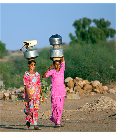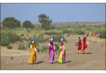 Тридесетина километра по-късно отбиваме от шосето и започваме да скачаме из дупките на прашен черен път. Терена започва да става малко по-автентичен. Както си караме, в един момент виждам нещо и викам я спри тук. В далечината група жени мъкнат гюмове с вода върху главите си. Те се движат плавно и в това жулещо слънце, шарените им дрехи много ме кефят. Докато се моткам да ги щракам, жените наближават. Моя човек вика бързай, че ще става лошо. Тези са още по-опасни от обитателите на „туристическата атракция“. Отново се омитаме преди жените да ни сгащят.