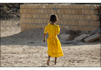 Както си караме натам, вече край едни грозни бетонни постройки гледаме в праха подскача едно кльощаво момиченце облечено в ярко-жълта рокля. Моя човек спира и му говори нещо. То послушно взема от него празна бутилка и след малко я връща пълна с вода. Става ми гот от това нормално състояние на нещата (свят, в който децата слушат и уважават възрастните) и давам на детето резервния си химикал, който е много приятнен да го щракаш. Момиченцето е впечатлено от подаръка, дъжи го в дясната си ръка и започва да си щрака с палец, но не се усмихва. Питам моя човек, защо не се усмихва, оня плямпа нещо, детето ме поглежда свенливо и най-после се усмихва. Виждам, че един от предните му зъби все още не е пораснал и ми става ясно, че липсата на зъб го кара да си държи устата затворена. Това ме докосва по особен начин, спомняйки си как се срамуваше моето малко момиче, когато сменяше млечните зъби. Спомням си как се опитваше да прикрие липсата на четири от тях, точно когато дойде време за училищната им фотография.