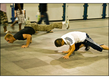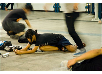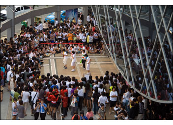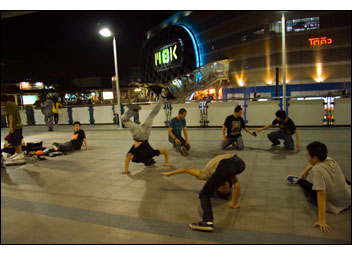 Край Националния стадион има грамаден шопинг център,MBK, където никой не ме тормози. Гледам някакви млади хора пред станцията на Sky Train правят break dance (от кога не бях виждал такова нещо), някакви други долу пък пеят и танцуват в стила на Britney Spears. Народ, шумотевица, изобщо купона върви. Аз обаче съм гладен. Малко по-натам свети уличка, пълна с разни сергии. Отново маркови буклуци на безбожно ниски цени, чанти, сувенири,DVD-та с най-новите филми за по 90 бата.