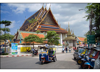 Навън е вече нощ, но продължава да бъде душно и лепкаво. Улицата пред хотела е пълна с хора. Някои от тях мърдат, но повечето мързелуват и чакат нещо да стане. Блъска ме тази миризма на пикантни храни с люти подправки, изгорели газове и тънък примес на канал, който няма да ме напусне никъде в Банкок. Нищо чудно след като целия град лежи върху 40 метра тиня. Върху мен веднага се нахвърлят разни шофьори на тук-тук, тези извратени моторчета/триколки с покрита седалка отзад. Mista, mista, vere u goin… викат те и ми бутат в лицето цветни брошури с голи снимки. Най-малката проява на вежливост ги насърчава до степен на невъзможност. Трябва да си измисля някакъв хитър начин да се отървавам по-лесно от тях. Като се правя на непокис нямам особен успех.
