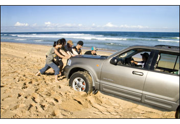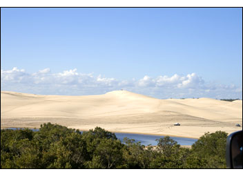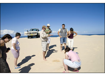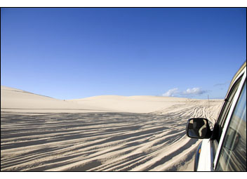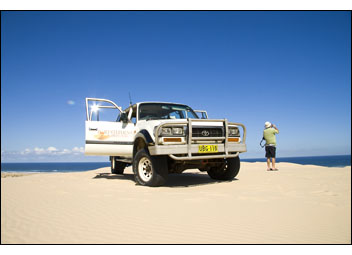 В информационния център на Port Stephens, туристическото градче в района се записвам за следобедния тур на дюните, организирван от “Port Stephens 4WD Tours”. Така се запознавам с Andrew, нашия водач. Заедно с още няколко туристи се качваме в неговата мощна Тойота и поемаме. В следващите четири часа ще обходим пясъците до другия край и обратно.