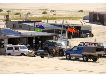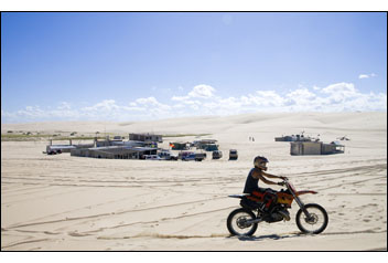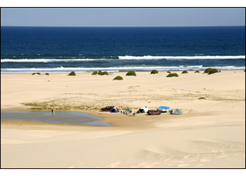 След няколко километра завиваме към дюните. От време на време сред тях виждаме палатки, най често край малки езерца. Понякога това са цели лагери с няколко коли, опънати сенници и пушещи барбекюта. Andrew ни обяснява че в резервата можеш да прекараш месеци наред без някой да те притеснява за такси или други сметки.